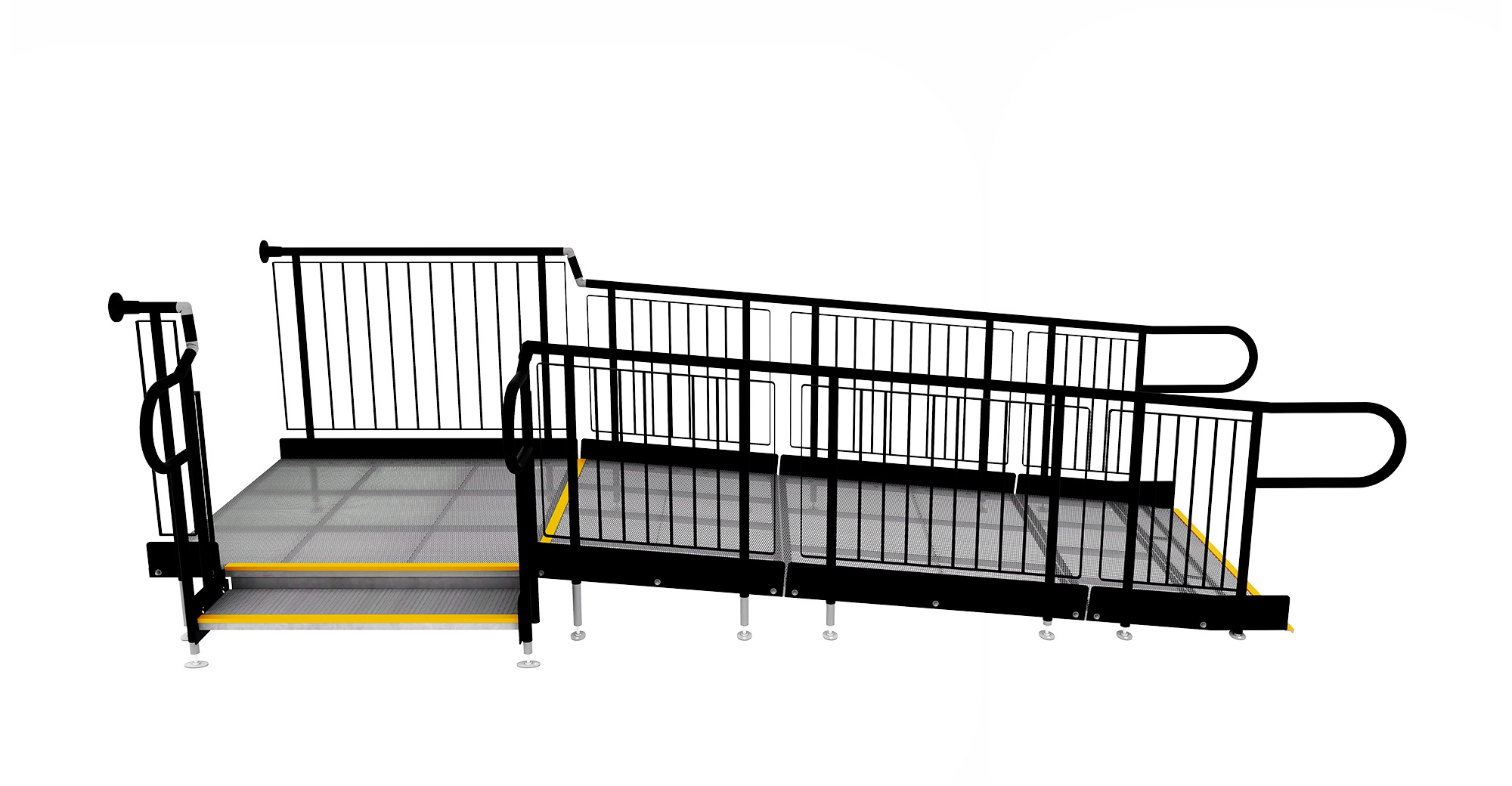 The metal modular ramp system (including wheelchair ramps) is manufactured from galvanised steel and is simply bolted together. Installation is quick and easy, with the ramp available for immediate use.